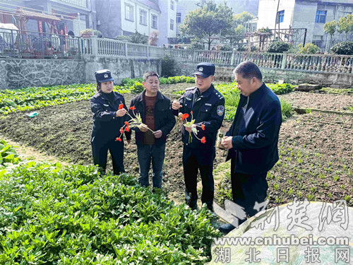 荆楚网(湖北日报网)讯(通讯员 欧阳智慧 张崔瑞)春风拂沃野,禁毒护家园。3月15日至17日,湖北省襄阳市保康县公安局组织城关派出所民警,联合禁毒大队禁毒社工,先后深入城关镇三溪沟村、土门村和黄土岭村,开展“禁种铲毒”踏查暨宣传教育活动,严防毒品原植物落地生长,坚决不让“罪恶之花”在辖区悄然绽放。