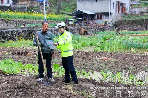 荆楚网(湖北日报网)讯(通讯员 欧阳智慧 方国辉)春耕农忙正当时,交通安全不松懈。3月17日,湖北省襄阳市保康县公安局交通管理大队创新宣传形式,组织民警深入城关镇东坡村,开展“美丽乡村行”交通安全主题宣传活动,将交通安全知识送到田间地头,为春耕生产筑牢道路交通安全防线。