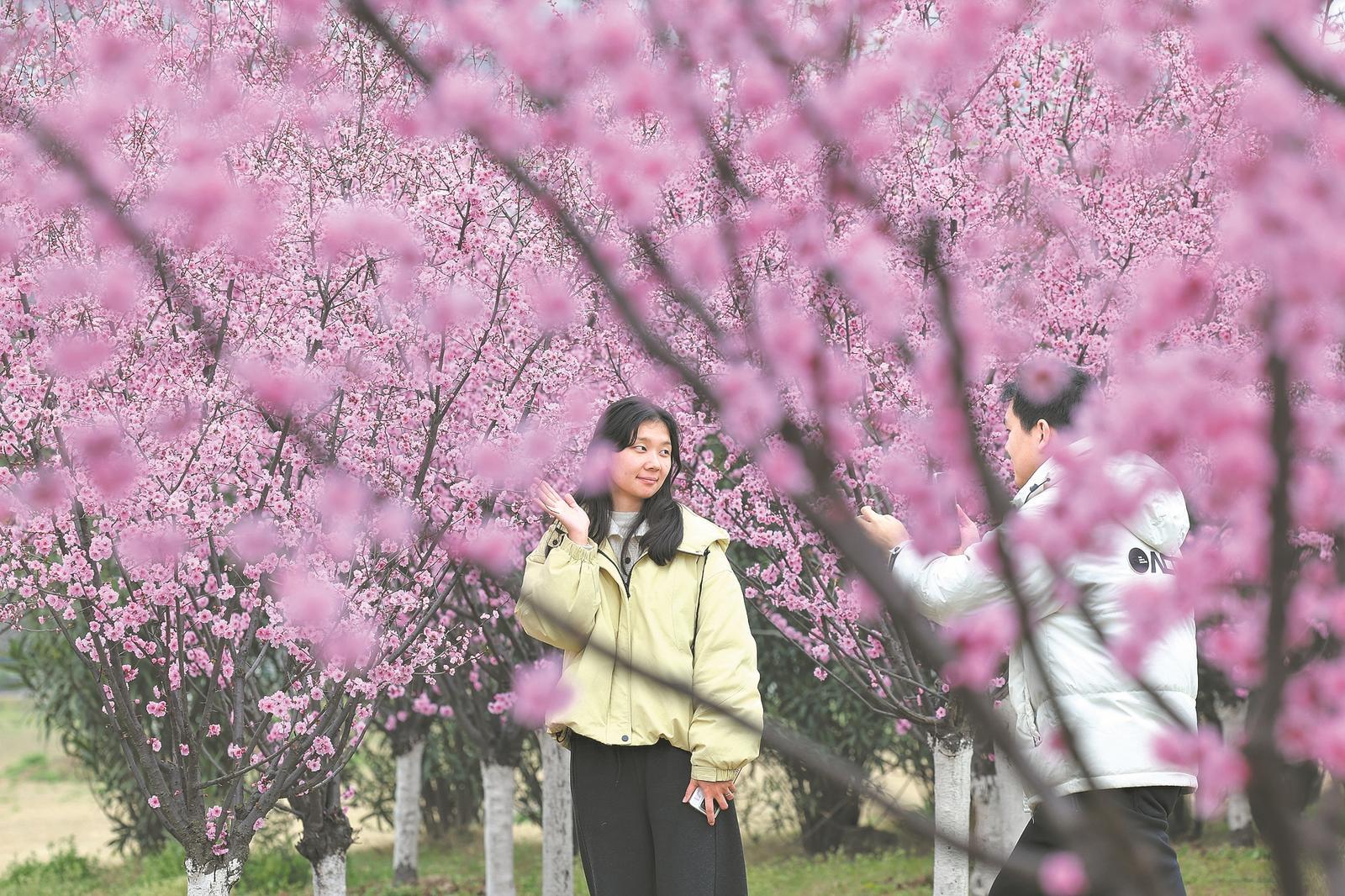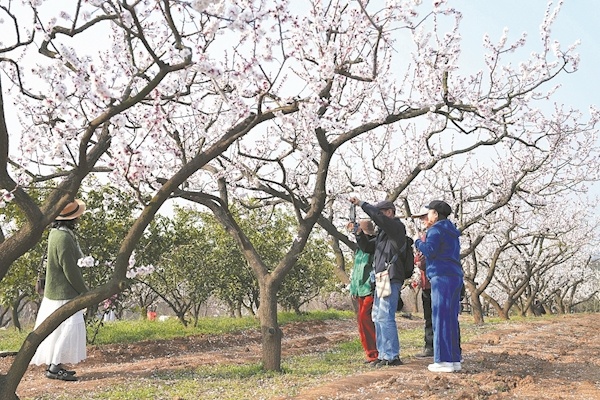 襄城区尹集乡肖冲村满树的杏花在春风中摇曳生姿。