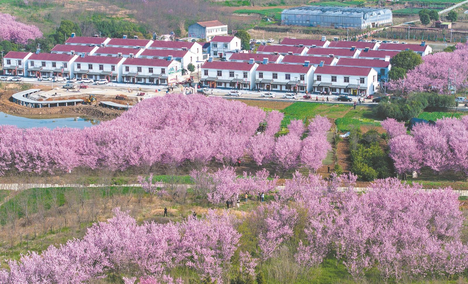 襄州区龙王镇松树坡村成片的樱花如云似霞。 记者 杨东 摄