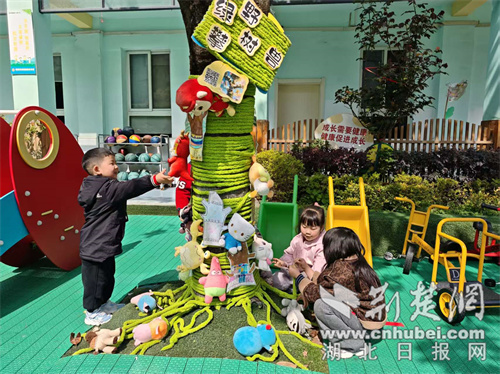 荆楚网(湖北日报网)讯(通讯员 魏莉 朱云卿 胡春卫)春风吹绿枝头,创意点亮校园。近日,襄阳市樊城区第六幼儿园的校园里,老师们带着孩子们用巧手为校园里的大树换上了春日新装,让一棵棵平日里普通的树木变成了充满生机的“春日小乐园”。