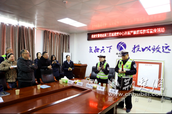 荆楚网(湖北日报网)讯(通讯员 欧阳智慧 李辉敏)3月31日,湖北省襄阳市保康县公安局交管大队走进湖北交投寺坪管理所第三区域运营中心,创新采用算账警示教育+实景体验互动新模式开展拒酒驾主题宣讲,以案释法、实操科普,全方位讲解隐形酒驾隐患,筑牢企业员工交通安全思想防线。