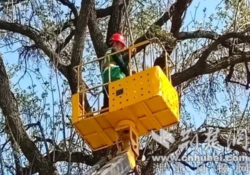 技术人员对楸树进行科学修剪、整形。通讯员供图