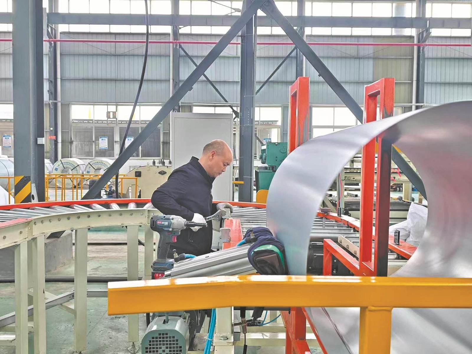 一边是镜头里的“汉江风起”,一边是车间里的“机器轰鸣”。在湖北欣旺新材料有限公司生产车间,焊接、喷涂一体化生产线高速运转,镀锌桶、喷漆桶等产品不断下线。