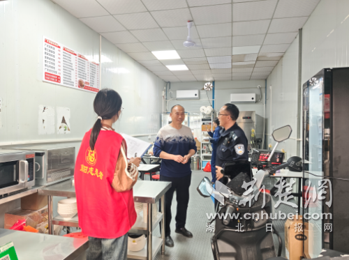 荆楚网(湖北日报网)讯(通讯员 陶小军)4月15日,为切实筑牢辖区经营场所安全防线,守护居民饮食健康与生命财产安全,高新区刘集街道郑岗社区联合消防、社区民警多部门开展“安全+健康”消防安全与健康证专项检查。