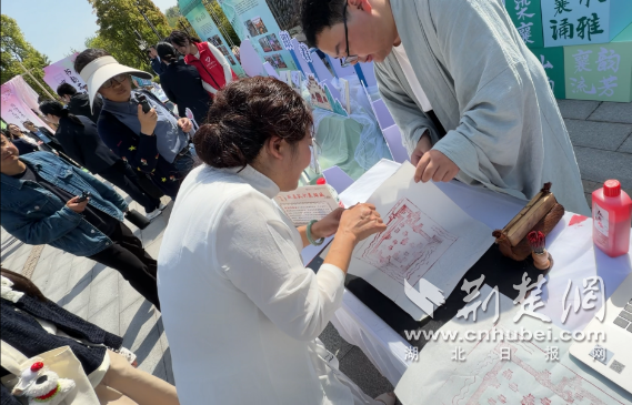 市民体验雕版印刷,拓印襄阳古城。 记者 王懿 摄