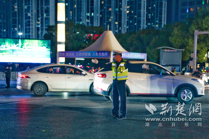 场外襄阳交警筑牢安全防线。通讯员供图