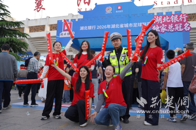 荆楚网(湖北日报网)讯(通讯员 贺傲然)4月18日晚,2026年湖北省城市足球联赛(“楚超”)襄阳赛区揭幕战在襄阳市体育场火热开赛。近2万名球迷涌入球场,见证襄阳东风风神队以4:0大胜对手,拿下主场开门红。绿茵场内激情四溢,场外襄阳交警以“严细实”的举措筑牢安全防线,全力护航赛事平安有序。