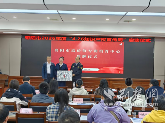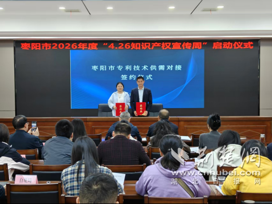 荆楚网(湖北日报网)讯(通讯员 王伊贝)4月20日,枣阳市2026年知识产权宣传周启动仪式举行。活动围绕“加强新兴领域知识产权保护 加快新质生产力发展”和“知识产权和体育:各就位、预备、创新!”双主题展开。襄阳市市场监管局专利管理科科长李檀、枣阳市市场监管局分管领导王文力,以及来自市委宣传部、市法院、市科经局等14家单位的负责人和重点企业代表共70余人参加。