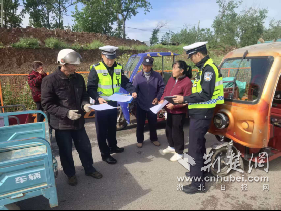 荆楚网(湖北日报网)讯(通讯员 习襄波)5月1日起,骑乘电动自行车未按规定佩戴头盔,将面临警告或20元罚款。新规实施前夕,4月22日,襄阳市公安局交管支队交警四大队把宣传阵地前移至村口集市、田间地头,针对农村群众安全意识薄弱、出行习惯随意的特点,开展多维度预热宣传与柔性执法。