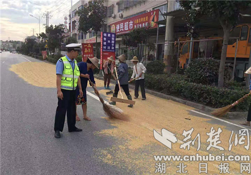 荆楚网客户端一荆楚网消息(通讯员 罗珊珊)正值农村秋收时节,一些村民在道路两侧占道晒谷,这种行为不仅严重影响道路交通秩序,还会带来诸多安全隐患。9月2日,谷城县公安局交警三中队民警对辖区道路开展公路晒粮等占道行为专项治理行动,确保农村公路安全畅通。