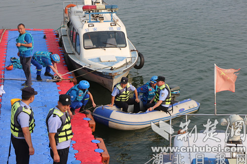 荆楚网客户端—荆楚网消息(记者李秋晨 通讯员毛定刚、莫骄)9月12日下午,襄阳市公安局鱼梁洲开发区分局牵头召开了以“强化水上救援救护演练,筑牢绿色汉江安全屏障”为主题的水上救援救护联合演练。此次演练以提升水域突发事故、溺水事件等处置能力为主,设置溺水救护和水下搜救两个科目。