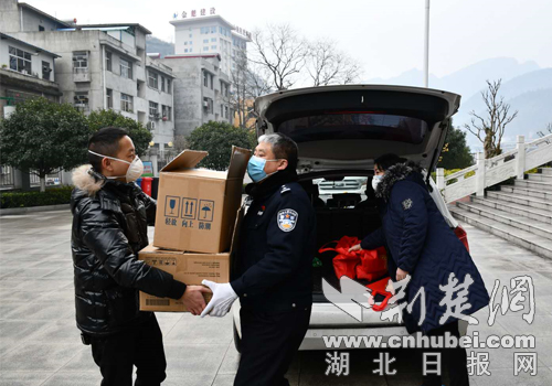荆楚网客户端—荆楚网消息(通讯员 欧阳智慧、杨尧旭)2月2日下午,保康八方房地产开发有限责任公司向保康县公安局捐赠2000个医用口罩、200个N95口罩和10瓶酒精。连日来,保康县公安局不断收到社会各界爱心企业和爱心人士送来的物资,包括防护口罩、护目镜、蔬菜、方便面、矿泉水等。