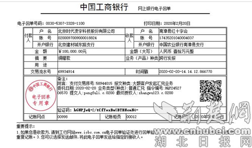 荆楚网客户端—荆楚网消息(通讯员 洪淼)2月20日,北京时代凌宇科技股份有限公司主动联系南漳县公安局,通过县红十字会向县公安局定向捐赠资金10万元,全力支持疫情防控工作的开展。