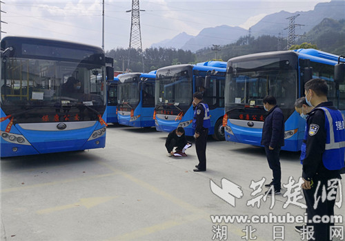 当日下午,保康县公安局交警大队车管所民警联合襄阳市公安局交警支队车管所民警,来到保康县公交公司,对该公司新购置的8辆新公交车进行集中查验。