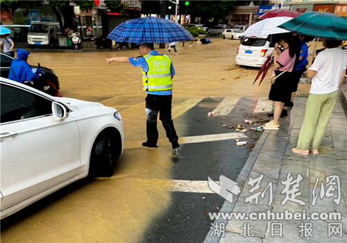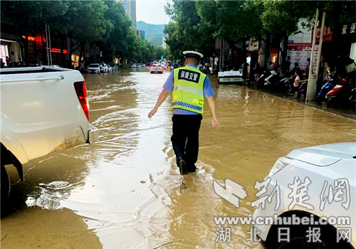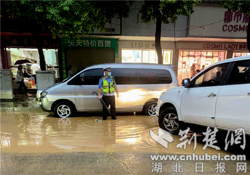 荆楚网客户端—荆楚网消息(通讯员 欧阳智慧、李辉敏)8月3日17时至18时,保康县城突降特大暴雨,城区地势低洼路段积水高达50公分,并有大量淤泥涌进多家门店。保康县公安局立即启动恶劣天气应急预案,迅速组织交警大队和城关派出所民警投入抢险救援工作,全力确保人民群众生命财产安全,预防道路交通事故发生。