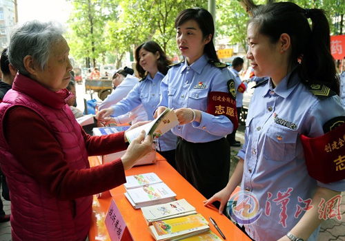 襄阳晚报讯(通讯员 向莉娟 邹莹 全媒体记者 孙修廷)5日上午,樊城区食药监局的13名青年干部组成志愿服务队,联合樊城解放西路社区,开展创建全国文明城市和国家食品安全城市的志愿宣传活动。