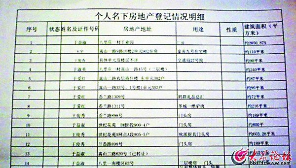 帖子里附着的“个人房地产登记情况明细”还显示于保成30多套房产的相关情况。