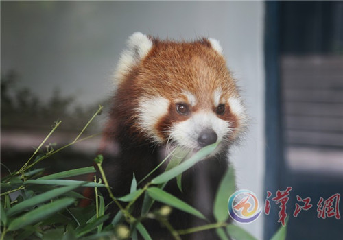 6月27日,在襄阳动物园,新来的小熊猫正在新家吃竹叶 全媒体记者李旭晖摄