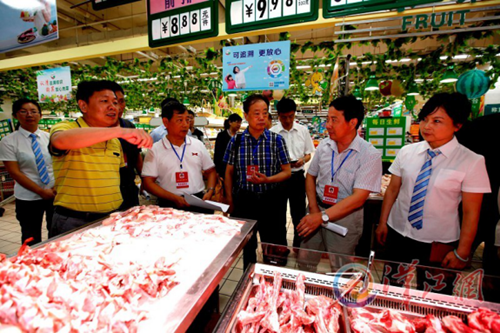 市政协第八民主监督组察看武商量贩长虹店肉类追溯上线试运行情况