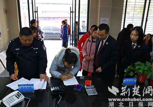 11月24日,湖北省十堰市郧阳区老崔(化名)等10名农民工在区检察院拿到老板拖欠一年多的工资后,相继陈述着感激之情。