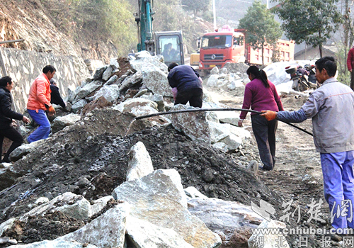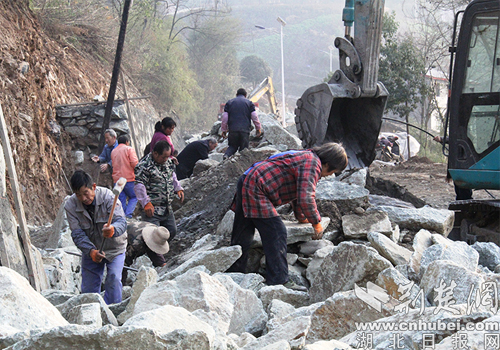 荆楚网消息(通讯员 陈新才)12月21日,湖北省十堰市郧阳区五峰乡东峰村返乡农民工正在搬运石料、砌挡墙,为即将硬化水泥路打基础。该区外出务工农民达20多万人。春节临近,是农民工陆续返乡之际,郧阳区利用阴历年前冬闲时节,组织返乡农民工投身农村公路建设,为美丽乡村建设与发展打牢基础。