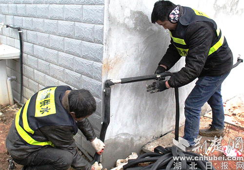 荆楚网消息(通讯员 陈新才、周斌)“裸露的水管加上保温套子,今冬再也不怕供水管道冻坏了,香菇种植用水也有保障了。” 12月31日下午,十堰市郧阳区杨溪铺镇青龙泉社区(之前的香菇小镇)贫困户刘随华,面对供水公司施工供水管网保暖的员工欣慰地说。