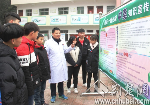 荆楚网消息(通讯员 陈新才、段吉生)1月7日下午,十堰市郧阳区鲍峡镇中心医院医生正在该镇中学为学生宣讲一氧化碳中毒特征与预防、应急处置知识。